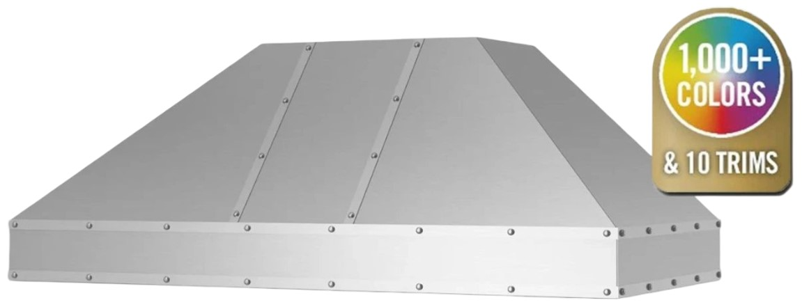 Metals & Strapping: Change your hood material from stainless steel to 14 different custom metals options including brass and copper. Plus, enhance your ventilation hood design by adding custom strapping and rivets to compliment other finishes in your kitchen.